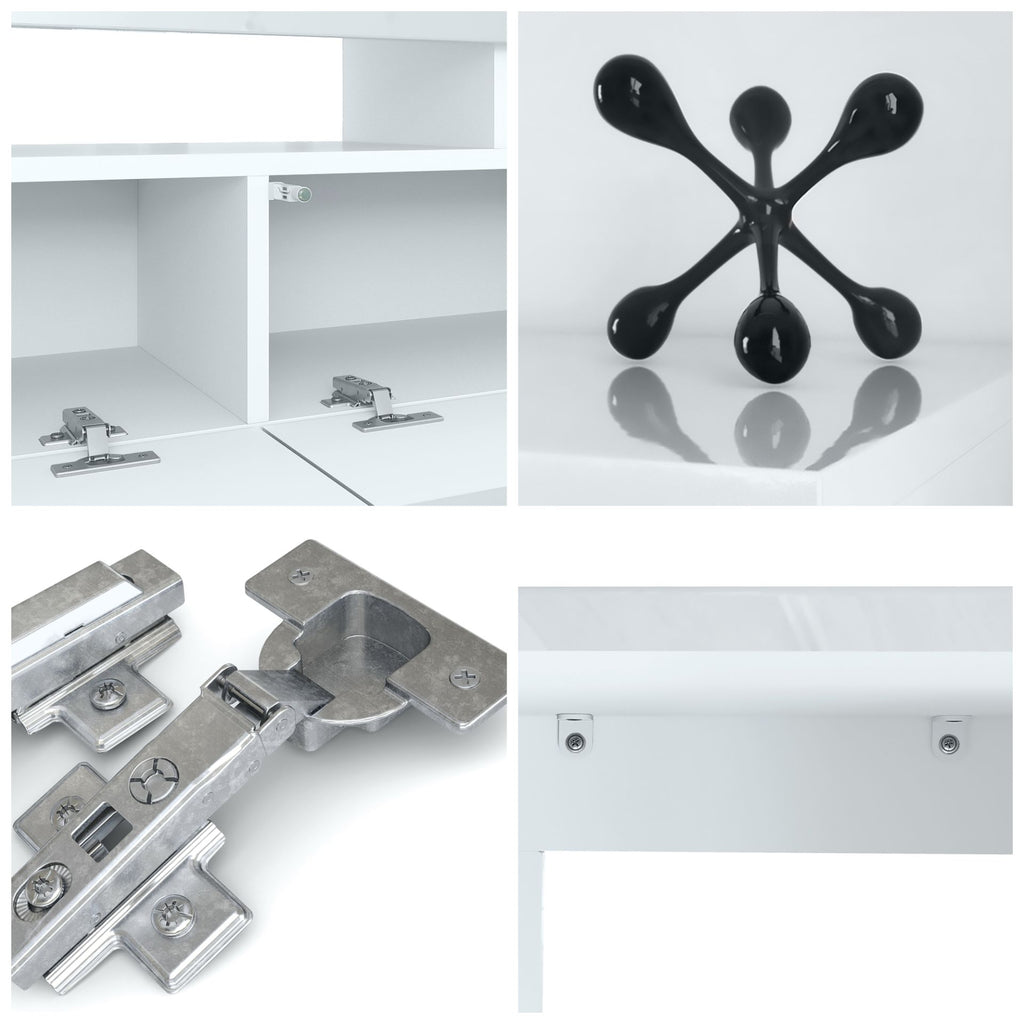 Durch das schlichte, moderne Design lässt sich das TV-Board mit vielen verschiedenen Einrichtungsstilen kombinieren und sowohl als Sideboard für den TV im Wohnzimmer oder TV-Schrank im Schlafzimmer einsetzen. Für eine besondere Eleganz sorgen die Fronten des TV-Tischs, erhältlich in vielen verschiedenen Farbvarianten, die Ihnen eine Vielzahl an Kombinationsmöglichkeiten bieten. Durch die Oberflächenbeschichtung erhalten Sie ein besonders pflegeleichtes Produkt. Für die Reinigung können Sie auf Chemie verzichten - es reicht ein leicht angefeuchtetes Tuch, um die wasserfeste Oberfläche angemessen zu reinigen.