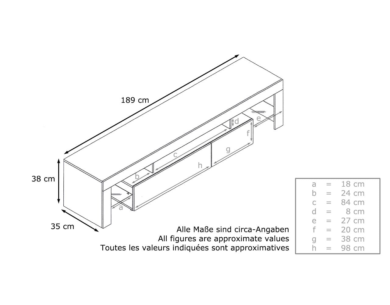 Lowboard (BxHxT): 189 x 38 x 35 cm