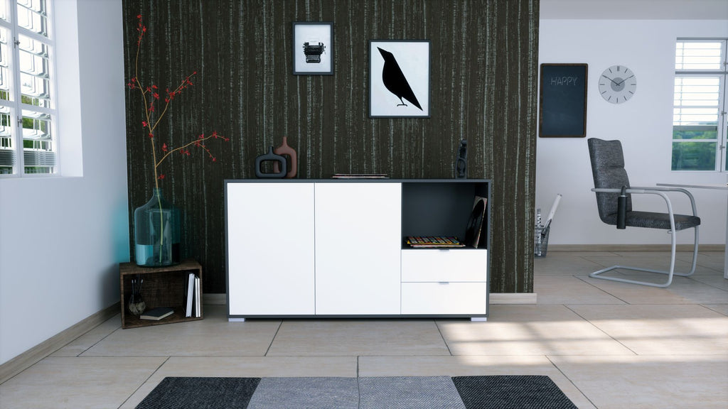 Sideboard Mirallo mit 2 Schubladen, Made in Germany Korpus Anthrazit matt (152,5 x 83 x 37 cm)