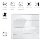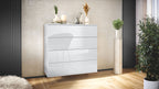 Durch das schlichte, moderne Design lässt sich die Kommode mit vielen verschiedenen Einrichtungsstilen kombinieren und sowohl als Wohnzimmerschrank, Kommode im Schlafzimmer oder als TV-Sideboard einsetzen. Für eine besondere Eleganz sorgen die Fronten der Schubladenkommode, erhältlich in vielen verschiedenen Farbvarianten, die Ihnen eine Vielzahl an Kombinationsmöglichkeiten bieten. Durch die Oberflächenbeschichtung erhalten Sie ein besonders pflegeleichtes Produkt. Für die Reinigung können Sie auf Chemie verzichten - es reicht ein leicht angefeuchtetes Tuch, um die wasserfeste Oberfläche angemessen zu reinigen.