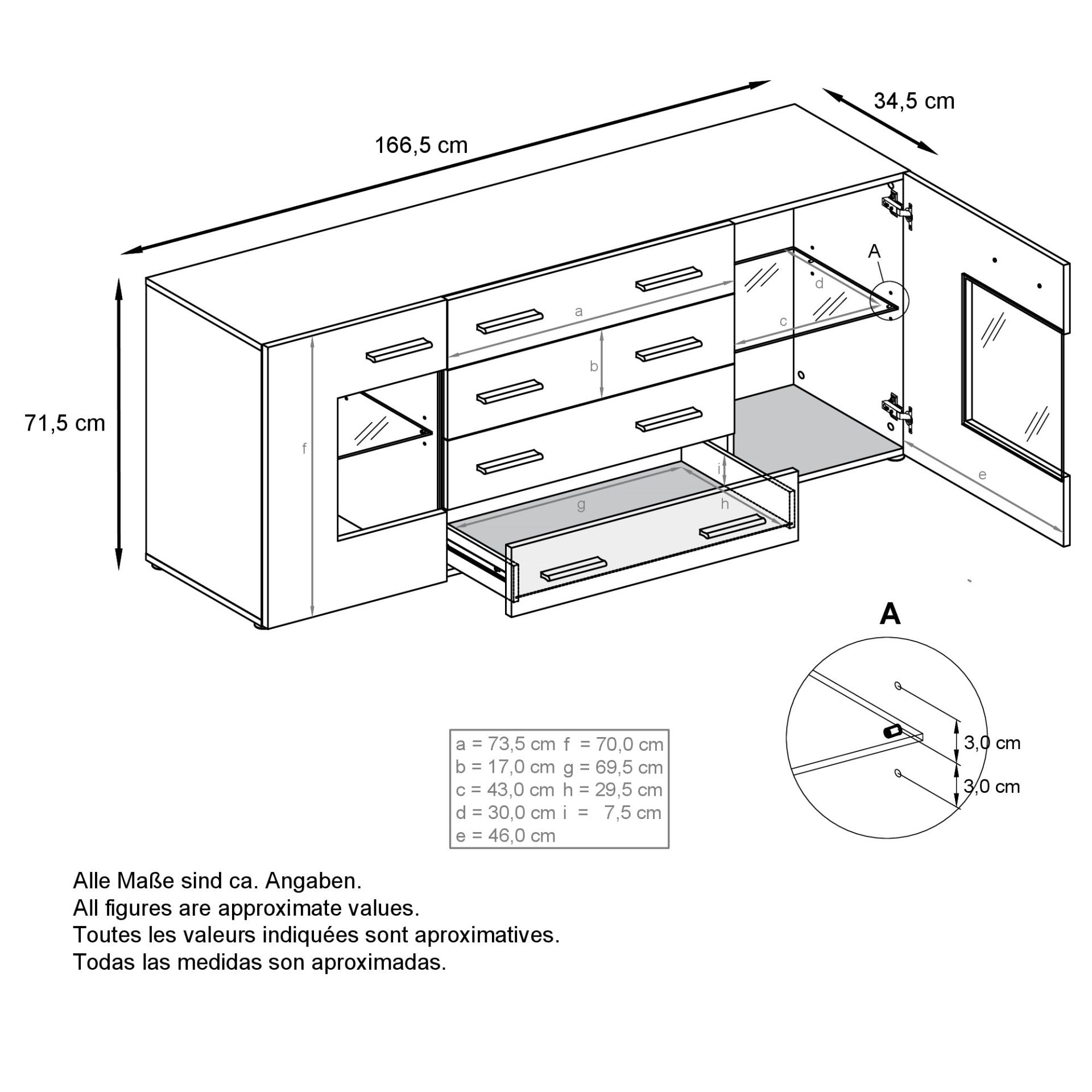 Maße des Sideboards in cm (BxHxT): 166 x 72 x 35