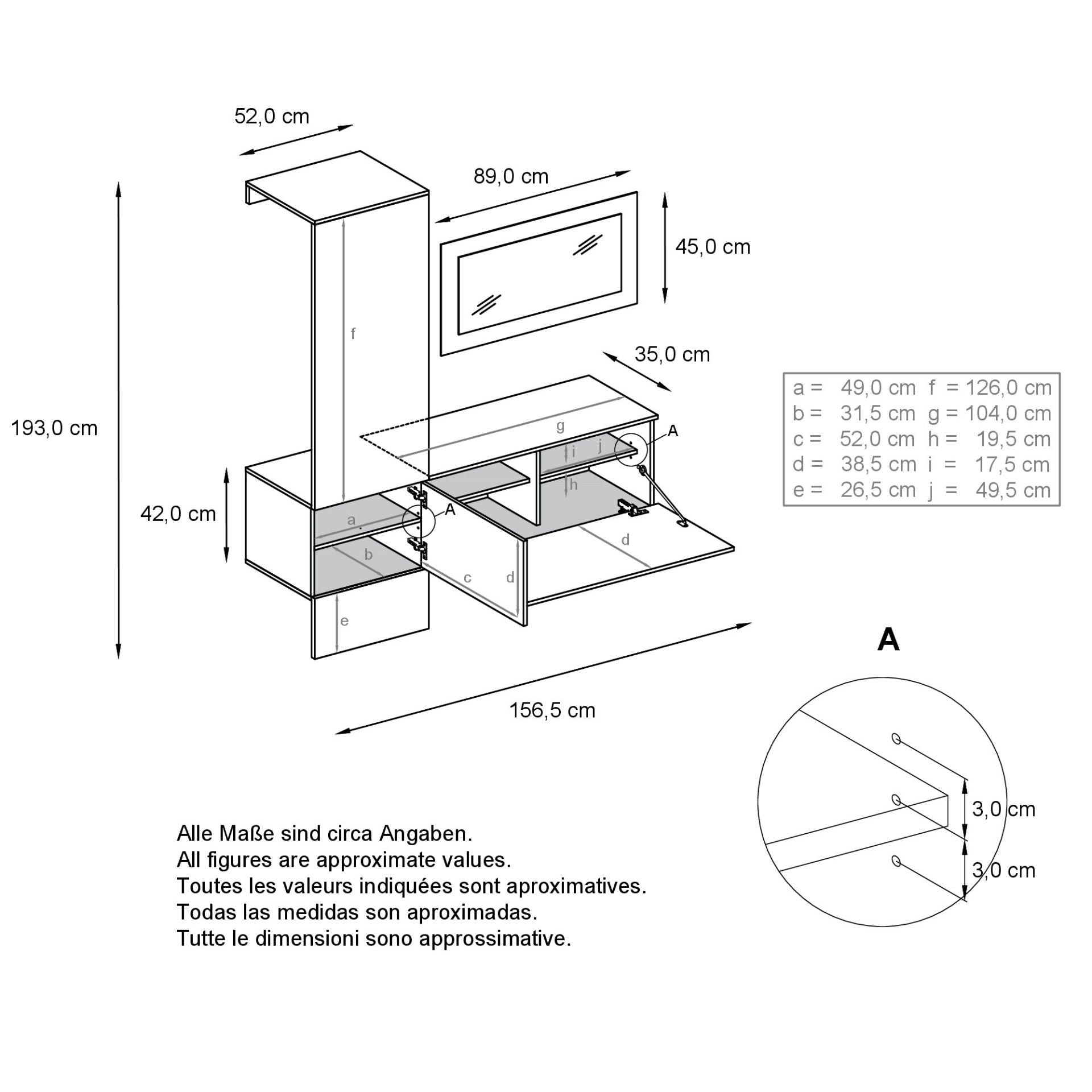 Garderobenset gesamt (BxHxT): 156 x 193 x 35 cm