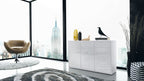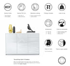Ob als modernes Sideboard im Wohnzimmer, Kommodenschrank für‘s Schlafzimmer, Anrichte im Flur oder als Kommode im Kinderzimmer - die geräumige Kommode Milan M3 präsentiert sich als praktisches Möbelstück mit modernem Design, hergestellt in Deutschland. Der Beistellschrank ist mit zwei großen Türen, einer kleinen Tür und zwei leichtgängigen Schubladen ausgerüstet. Hinter den Türen befinden sich jeweils zwei geräumige Fächer mit Einlegeboden. Die Türen und Schubladen sind mit unserem Push-to-Open-System ausgestattet. Eine Rückwand in Holzoptik aus Hartfaserplatten ist im Lieferumfang enthalten.