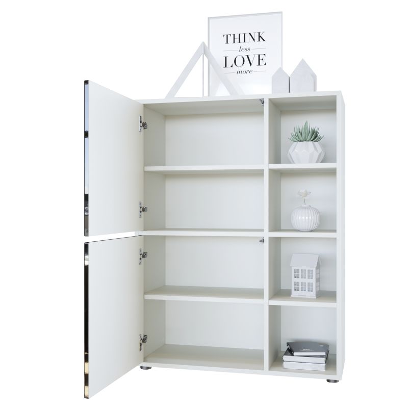 Produktinformationen "Mora Highboard Korpus Weiß mit 2 Türen und 4 offenen Fächern (79 x 105,5 x 35,5 cm)"
