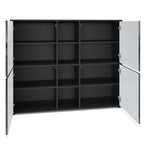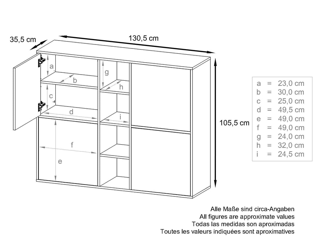 <p>Das Highboard hat vier Schranktüren, hinter denen sich je zwei Fächer befinden. Die Fächer sind durch einen höhenverstellbaren Einlegeboden voneinander getrennt. Alle Schranktüren sind anstelle eines Griffes mit einem modernen Push-to-Open-System ausgestattet.</p>