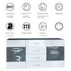 Das Sideboard verfügt über vier schlanke und leichtgängige Schubladen, die ideal sind, um kleinere Gegenstände des täglichen Gebrauchs staubgeschützt und gut organisiert aufzubewahren. An den Seiten befinden sich zwei Türen mit rahmenloser Verglasung, die dem Sideboard ein offenes und ansprechendes Erscheinungsbild verleihen. Die Glaseinlegeböden bieten Raum für individuelle Dekoration und setzen Ihre Lieblingsaccessoires gekonnt in Szene.