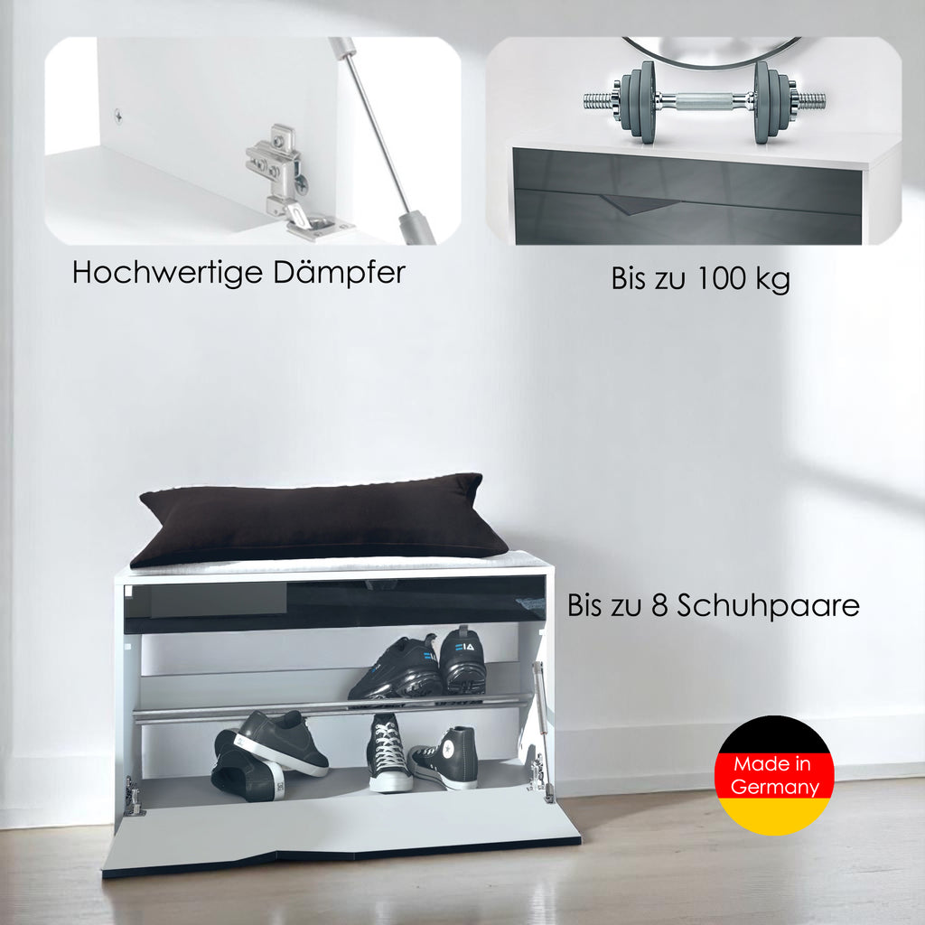 Sitzbank Riva – Stilvoller Komfort mit Stauraum für 8 Paar Schuhe