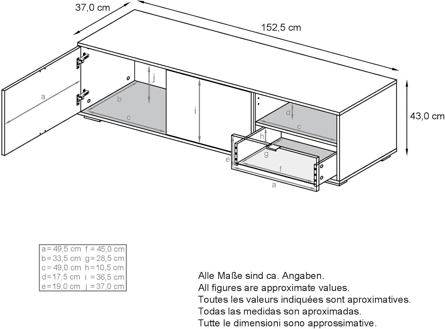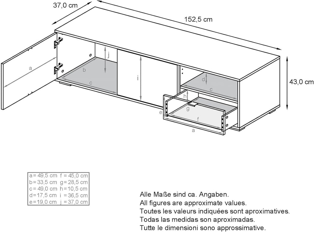 • Maße (BxHxT): 152,5 x 43 x 37 cm