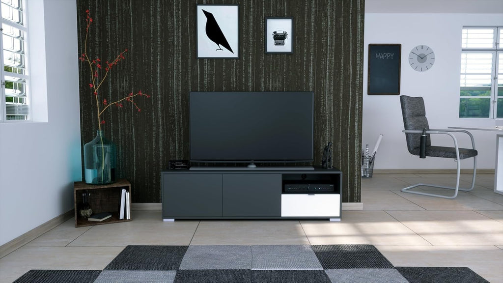 Das Lowboard Mirallo bringt klares Design und Alltagstauglichkeit zusammen. Der Korpus in Anthrazit matt sorgt für eine moderne, zeitlose Optik. Silberne Füße setzen dezente Akzente und sorgen für einen sicheren Stand. Die Frontfarbe ist individuell wählbar und lässt sich perfekt auf deinen Einrichtungsstil abstimmen.