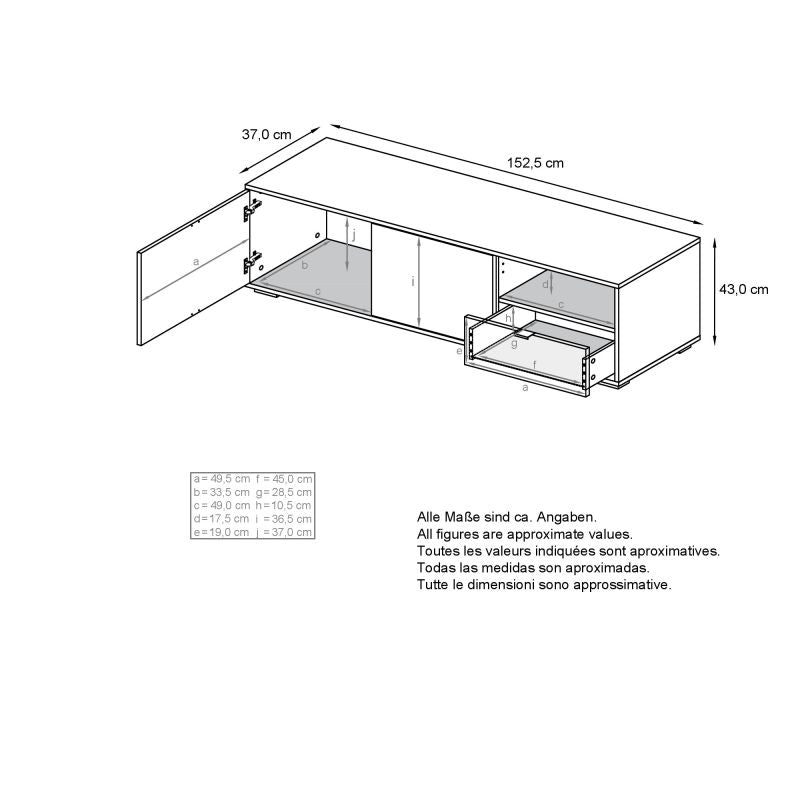 Maße (BxHxT): 152,5 x 43 x 37 cm